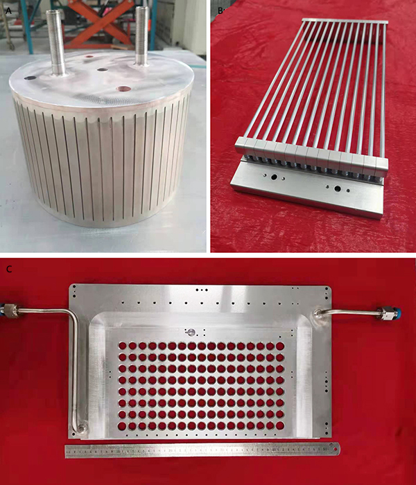图1 磁约束聚变堆关键部件。(A) 法拉第屏蔽筒;(B) 菱形加速电极;(C) 栅板电极。