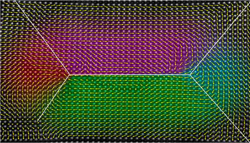 图3、极化矢量与原始图像的叠加清晰展示具有对称特征的通量全闭合铁电畴。