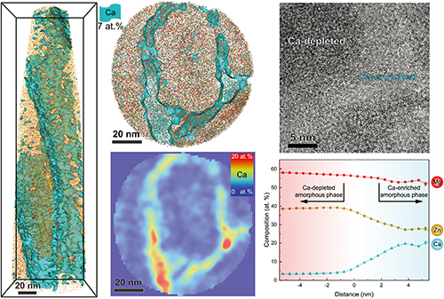 图1. Mg-Zn-Ca双相金属玻璃(NDP-MG)的结构与成分。
