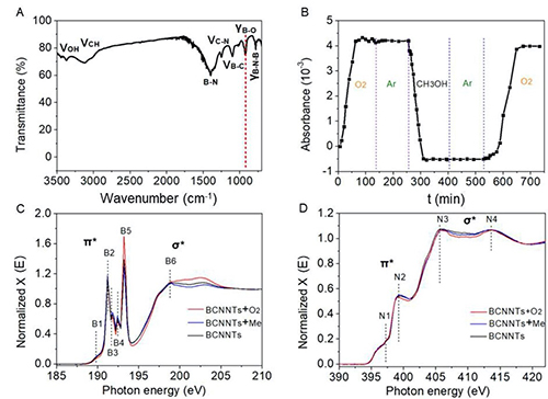 图3. BCN纳米管复合材料催化甲醇转化生成二甲醚和甲醛反应活性中心定性与定量。