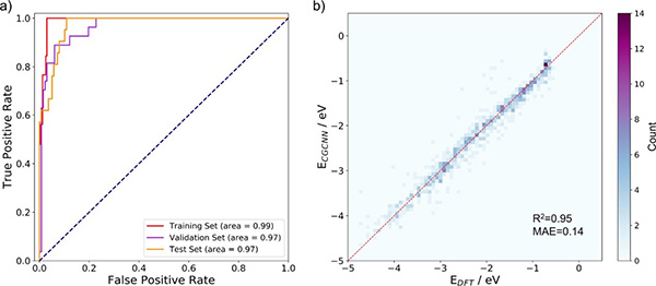图二、机器学习模型的性能。a) 分类性能,b) 回归性能。