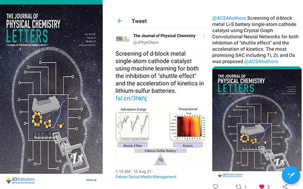 图四、从左到右:封面图片, Journal of Physical Chemistry 推特介绍,ACS推特介绍。