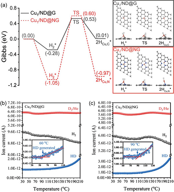 图3原子级分散Cu催化剂不同配位环境(Cu-C、Cu-N)活化氢气的DFT与H2-D2交换实验结果结果