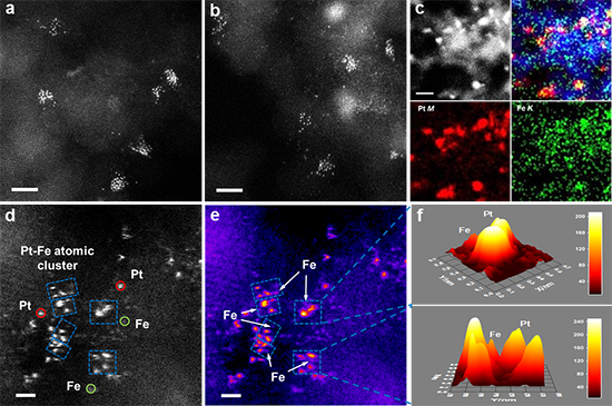 图1. 全暴露PtFe双金属团簇(0.75Pt0.2Fe/ND@G)的HAADF-STEM表征