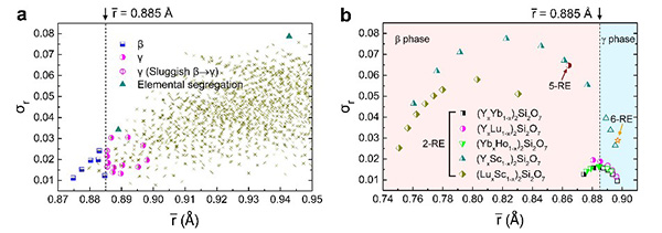 沈阳材料科学国家研究中心陶瓷及复合材料研究部环境障涂层团队长期致力于航空发动机多功能热/环境障涂层的精准设计与先进制造技术研究。团队研究人员利用高通量理论模拟结合实验验证,研究了多主元(高熵)稀土双硅酸盐的相形成及演变机理,建立了通过构型熵描述符和多元稀土等效离子半径等来预判和控制相结构的普适方法。