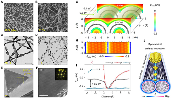 图1. 单壁碳纳米管诱导高有序度纳米晶体材料的生长及其机制。