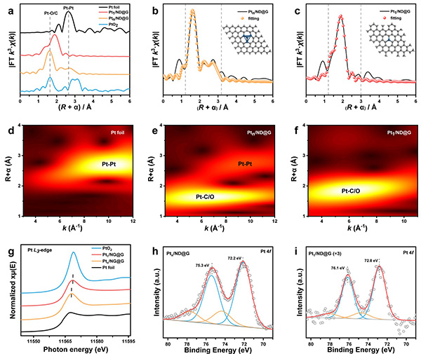 图1 XAFS和XPS表征。a-c EXAFS谱图, d-f 小波变换分析, g-i XPS谱图。