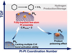 氢气具有能量密度高及经济环保的优点,但氢气的存储和运输一直是阻碍氢能规模应用的瓶颈。利用液态有机储氢介质(LOHC),例如环己烷、十二氢咔唑等脱氢反应可以制氢,结合其反向加氢反应,可实现氢气的可逆储放和高效输运。